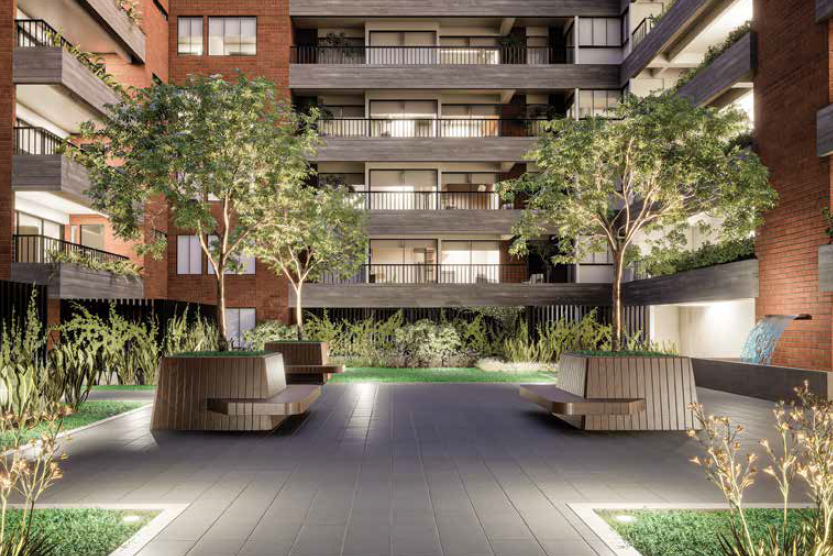 Ubicado en la urbanización Huertos de San Antonio, frente al Condominio Británico y al ingreso de la Embajada Británica, este proyecto alberga 33 departamentos en cinco pisos, de los cuales 14 tienen vista a la calle y 19 miran a un generoso patio interior tratado paisajísticamente. Se tienen 28 departamentos de tres dormitorios y cinco de dos dormitorios. Dos sótanos contienen estacionamientos para 60 carros y 61 bicicletas. Todos los departamentos del quinto piso son dúplex, con ambientes sociales y áreas verdes en sus aires. El condominio cuenta con dos núcleos de circulación vertical que además permiten acceder a las áreas comunes en planta baja (pet room, coworking, salón multiuso) y al gimnasio y zona de parrillas en la azotea.